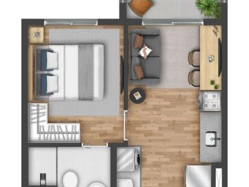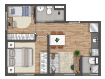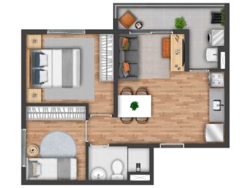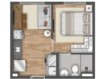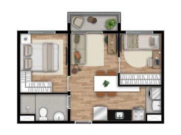Apartamentos de 1 e 2 dormitórios com varanda.