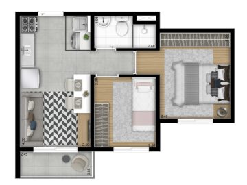 Tipo 2 Dorm s/ suíte c/ terraço.: 33,67m² a 36,07m²