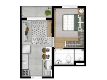 Tipo 2 Dorm s/ suíte c/ terraço.: 26,87m² a 27,26m²