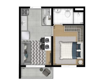 Tipo 1 Dorm s/ suíte c/ terraço.: 23,87m² a 27,34m²