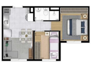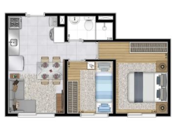 Metragem : Apartamento 2 Dorms. de 32,25m² a 33,21m²