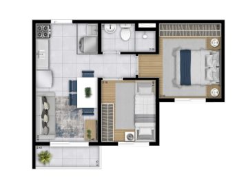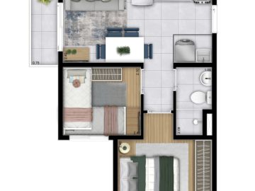 Torre D - Aptos Tipo 2 dorm. c/ terraço: 34,02m² a 35,26m² - Aptos Térreo 2 dorm. c/ terraço: 34,12m² a 35,37m²